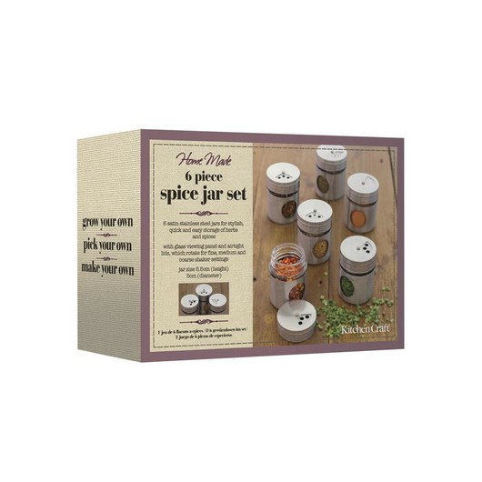 Набір для спецій з колекції Home Made ідеально підходить для зберігання сушених трав і спецій. У набір входять 6 матових баночок з нержавіючої сталі з герметичними кришками для збереження свіжості вмісту. Через невеликі скляні віконця зручно проглядається вміст баночок. На кришці є отвори середнього і великого розміру.