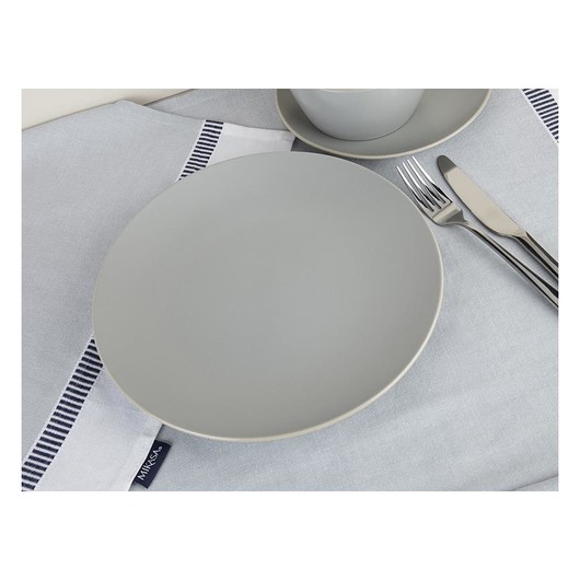 Ця кругла обідня тарілка з колекції Mikasa Gourmet відображає невимушений стиль життя та підходить для теплих дружніх посиденьок. Виготовлена з твердої кераміки білого/сірого матового кольору, тоді як глянцевий ободок додає естетичності.